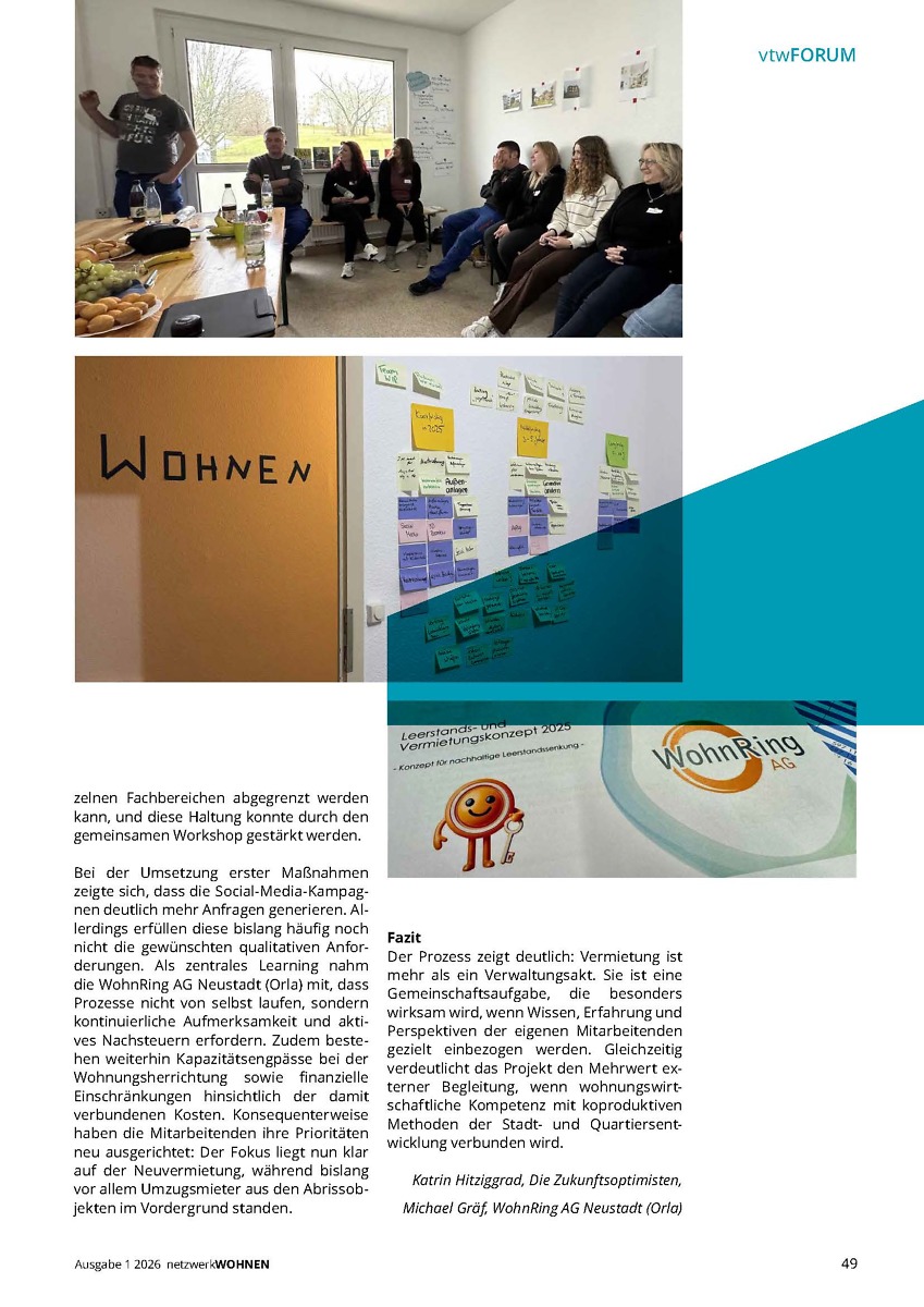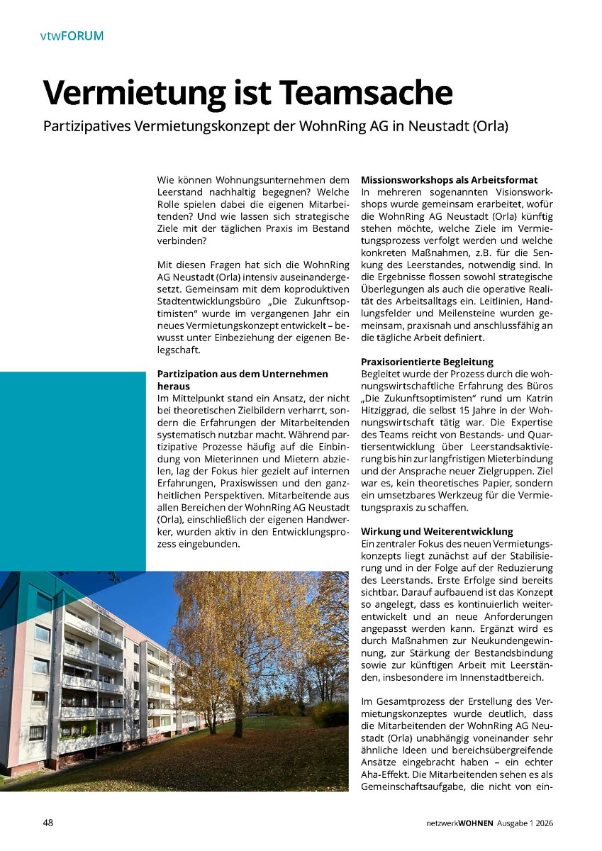 Hierfür ist in der aktuellen Ausgabe der Verbandszeitschrift netzwerkWOHNEN des vtw - Verband Thüringer Wohnungswirtschaft e.V. ein zweiseitiger Artikel erschienen.