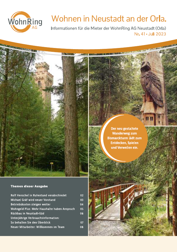 Unsere Mieterzeitschrift informiert Sie zweimal im Jahr über das Geschehen bei der WohnRing AG. Schwarz auf weiß steht alles drin, was Sie wissen müssen. Das gute daran, die Zeitung wird unseren Mietern, Anteilseignern und den Wohnungseigentümern automatisch zugestellt. So können Sie sich jede Zeit der Welt nehmen und sich alles in Ruhe durchlesen. Und wer seine Zeitung nicht mehr hat und noch etwas nachlesen muss, kann sich hier die letzten Ausgaben nochmals online ansehen.